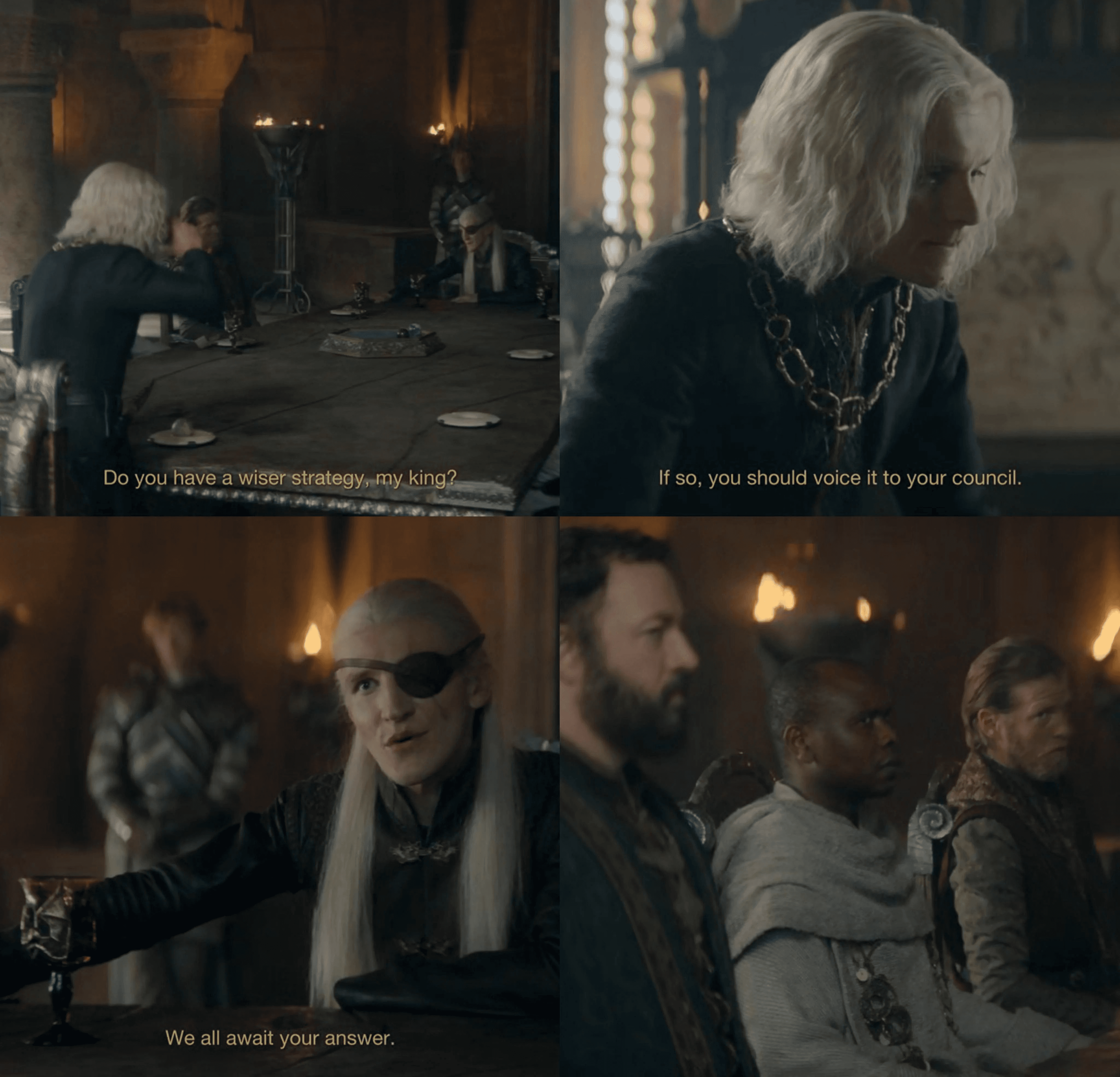 "Do you have a wiser strategy, my king? If so, you should voice it to your council.