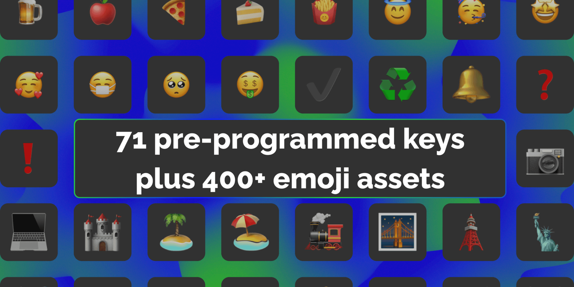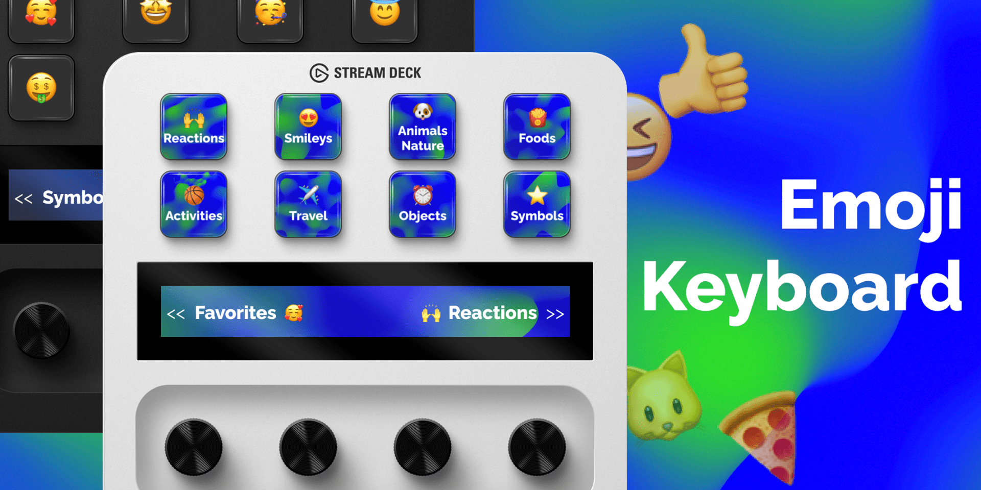 Elevate your digital expressions with the free Emoji Keyboard for Stream Deck +. This intuitive profile brings you eight vibrant emoji categories, including reactions, smileys, animals/nature, and more, plus a customizable favorites page.Navigate swiftly with top-level folders and seamless swipe between categories. Perfect for gaming, chatting, or social media, each Stream Deck key press instantly inserts the official Unicode emoji. Streamlined, user-friendly, and compatible with Windows, macOS, and any Unicode-supported device, the Emoji Keyboard transforms your digital interactions effortlessly.