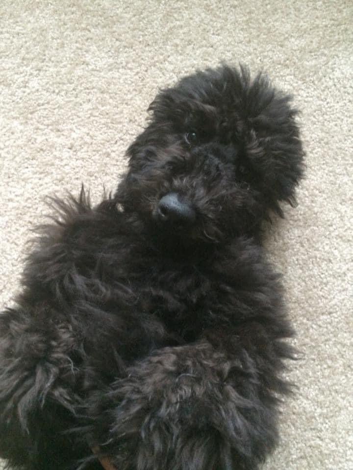 My Mom's coworker (Lori) had a Goldendoodle that I was obsessed with at the time. I set my sights on getting one someday. I spent a lot of time researching dogs but couldn't quite swing the price tag that came with one. In Virginia, a Goldendoodle was starting at $2,500, a pretty steep price for someone who had just purchased new furniture and finishings for my first place on the East Coast. One day, I came across a litter of black Goldendoodles that were being advertised for $500 a pup.