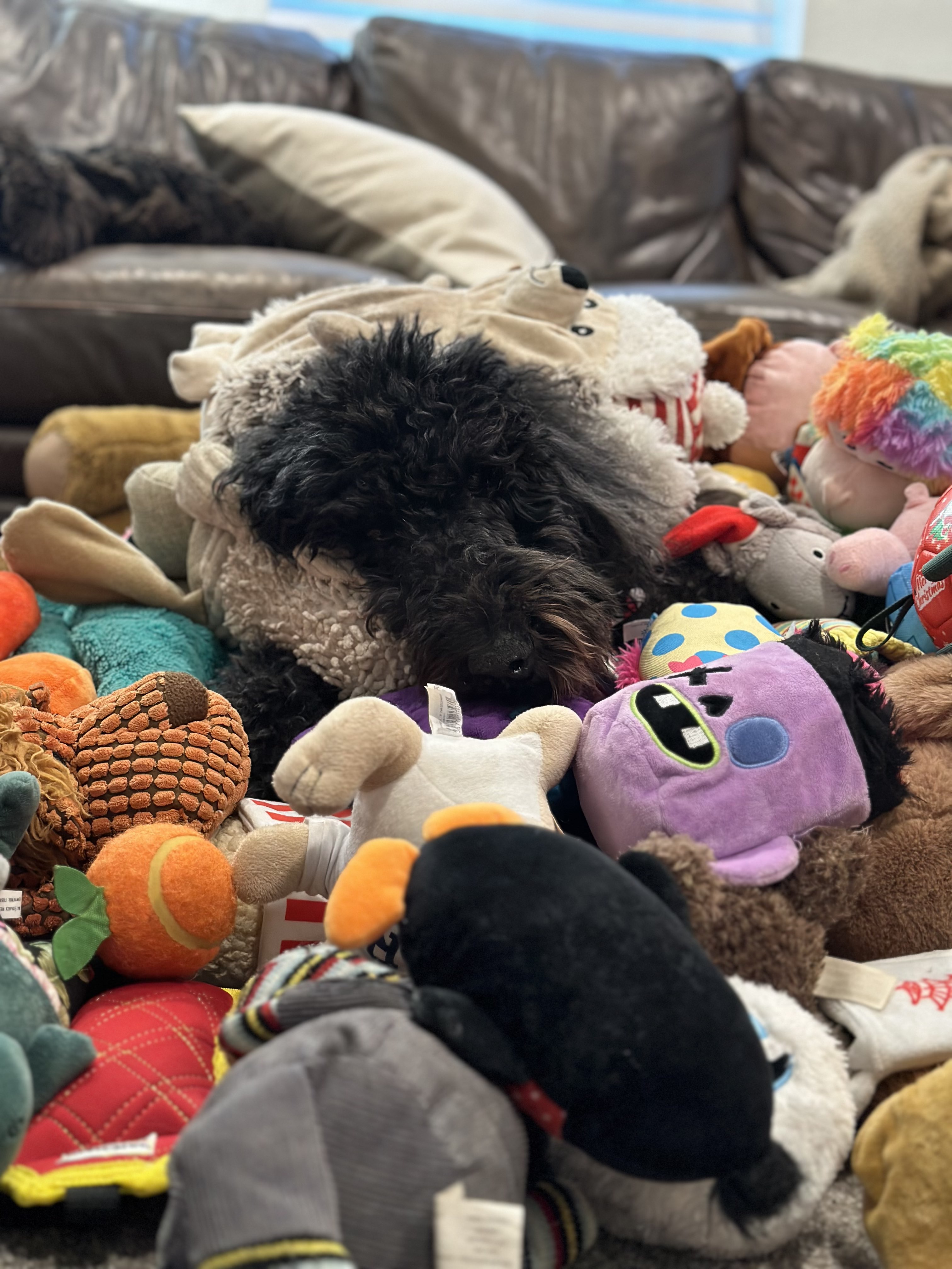 His couch still sits beside me, where he 'worked' alongside me daily. Outside my office is a 4-foot-tall mountain of hundreds of his toys that Kelsey and I hug for just the tiniest bit of comfort. We love and miss him terribly. He was such a big part of our family and made every day special.